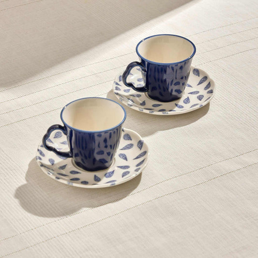 CLOVER LEAF PORCELAIN SET OF 2 COFFEE CUPS 80 ML - WHITE & BLUE