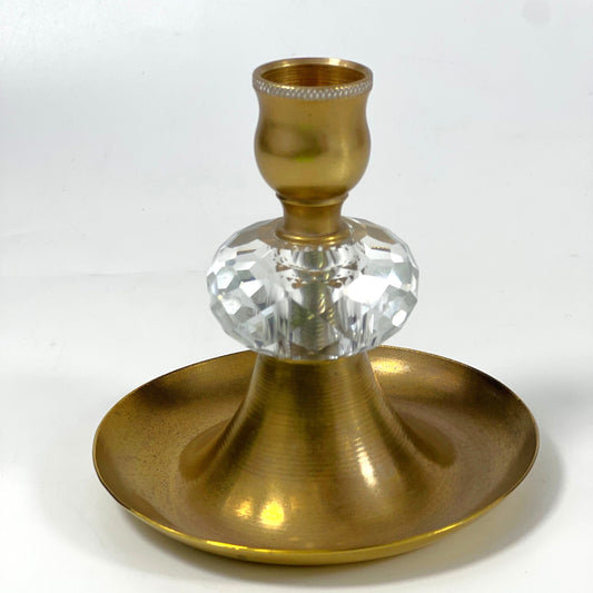 HANDMADE CANDLE HOLDER CRYSTAL BRASS 9.5 CM