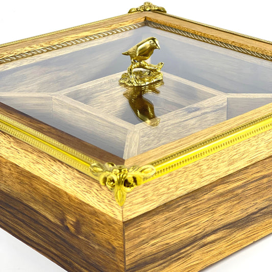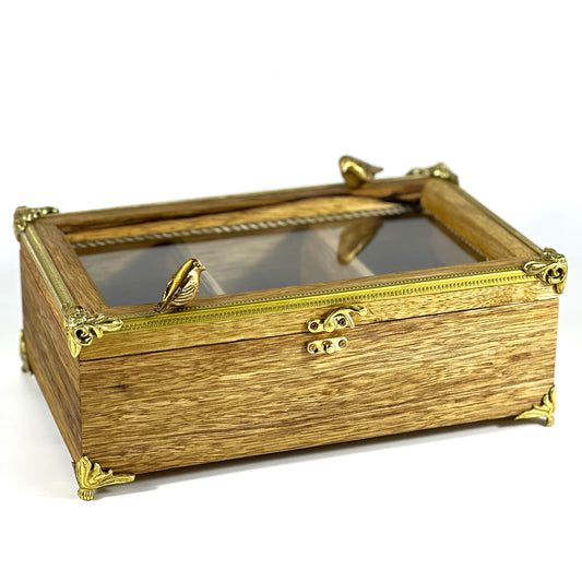 Handcrafted Wooden Storage Box with Decorative Gold Accents