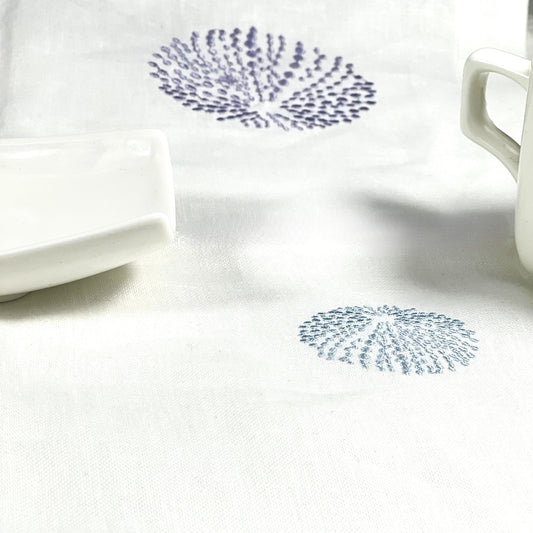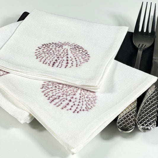 SEA URCHIN PURPLE -WHITE LINEN COCKTAIL NAPKIN