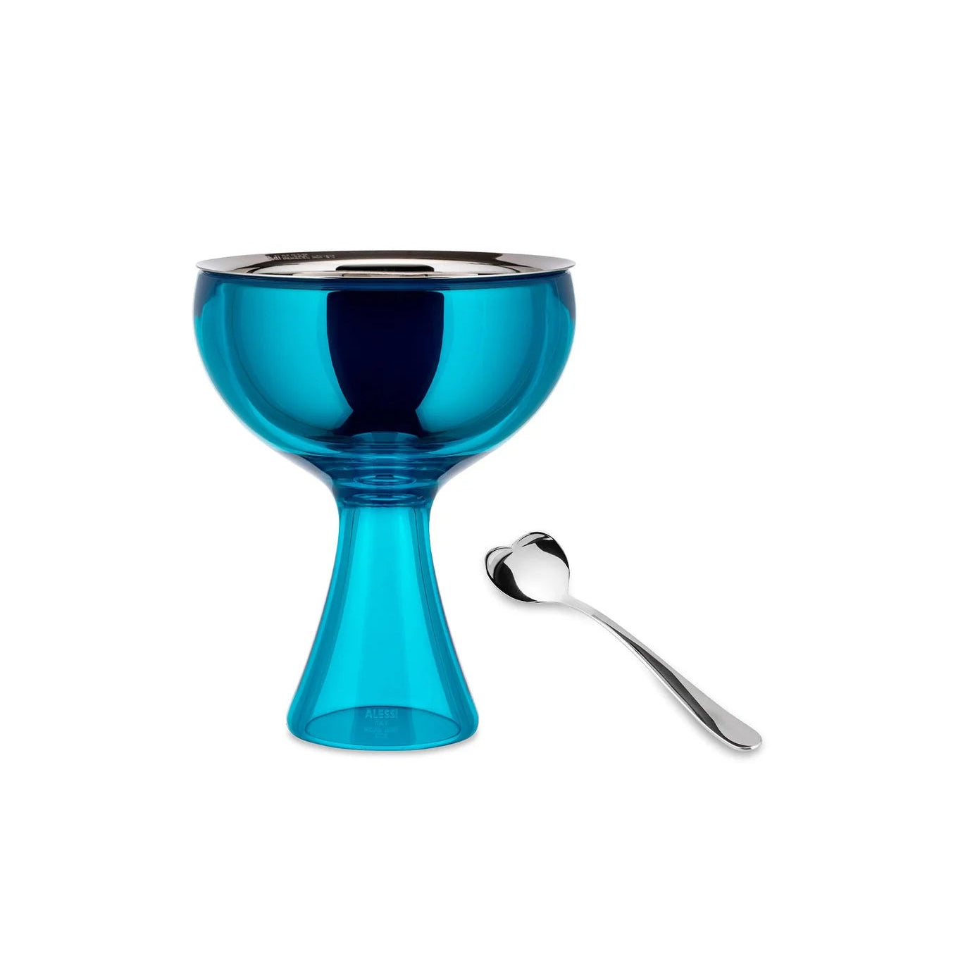 Big Love is a big bowl designed for singles as well as couples: the two halves of the spoon heart a small divertissement make it possible for each to sip his or her part of the ice cream without touching that of the other.