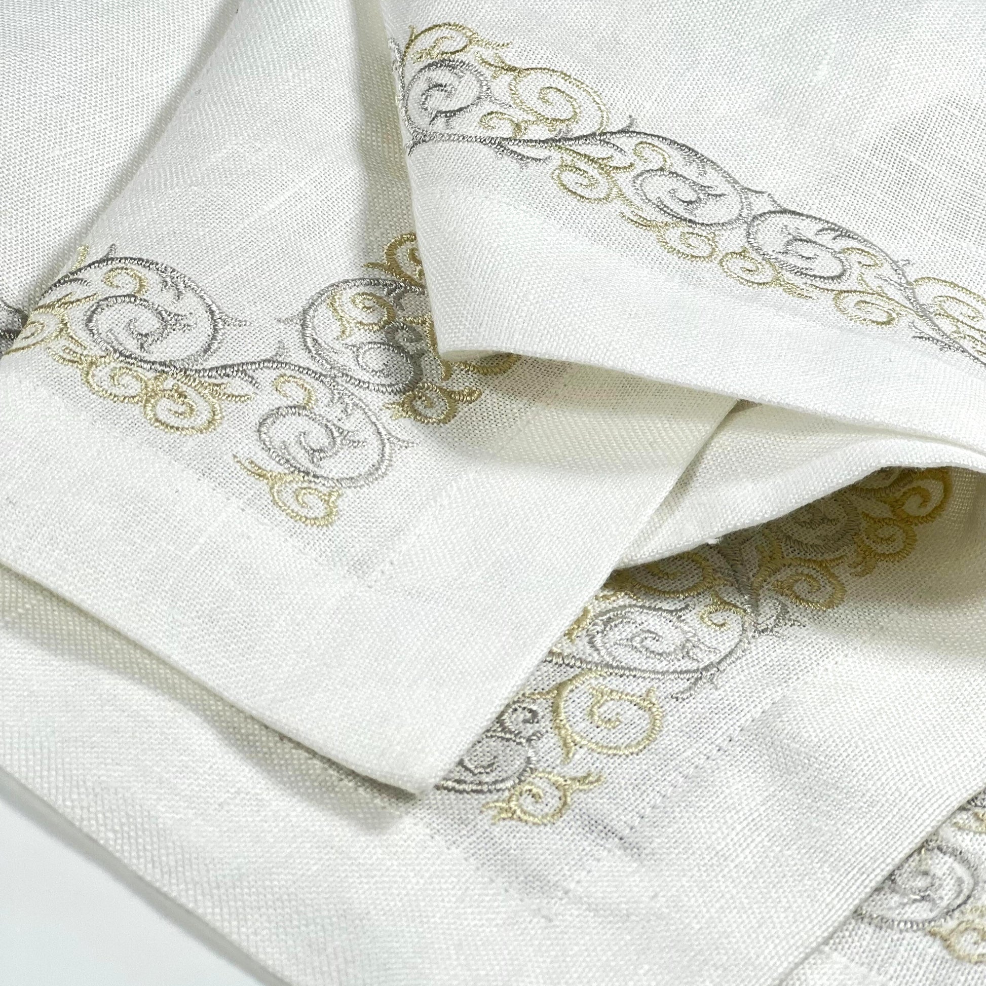Add a touch of sophistication to your serving setup with the Border Silver-White Linen Trayliner. This elegant trayliner is crafted from high-quality linen, offering a soft and refined texture that enhances the presentation of trays, tables, or countertops.
