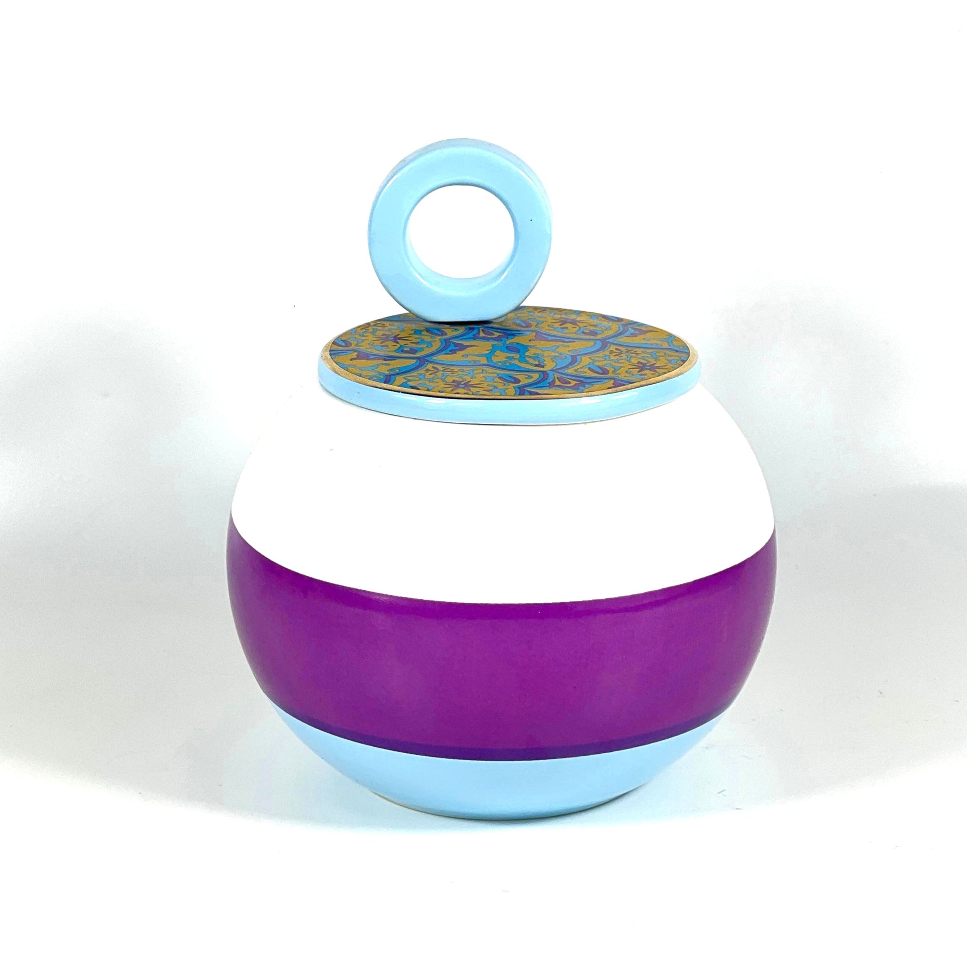 Add a pop of color and modern elegance to your space with the Ceramic Jar K1 in Purple. This sleek, high-gloss jar features clean lines and a rich, deep purple glaze that brings bold personality to any shelf, counter, or tabletop. Perfect for storing dry goods, trinkets, or simply styling your space with a contemporary edge.