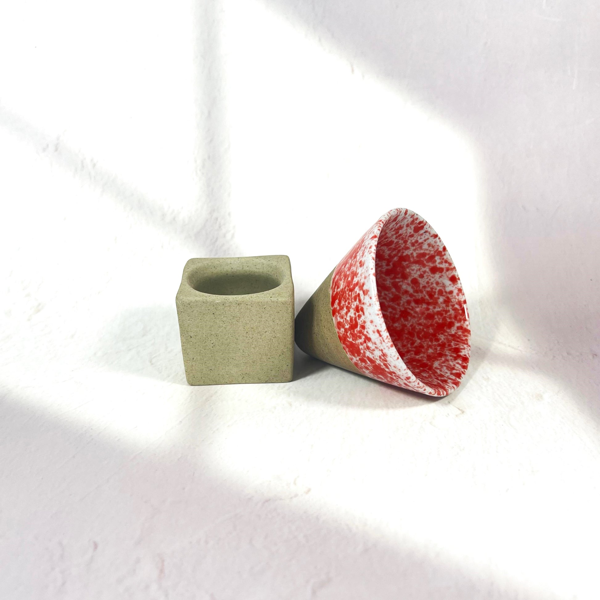 Conical Shaped Tea Cup with Holder (100ml) - Red
