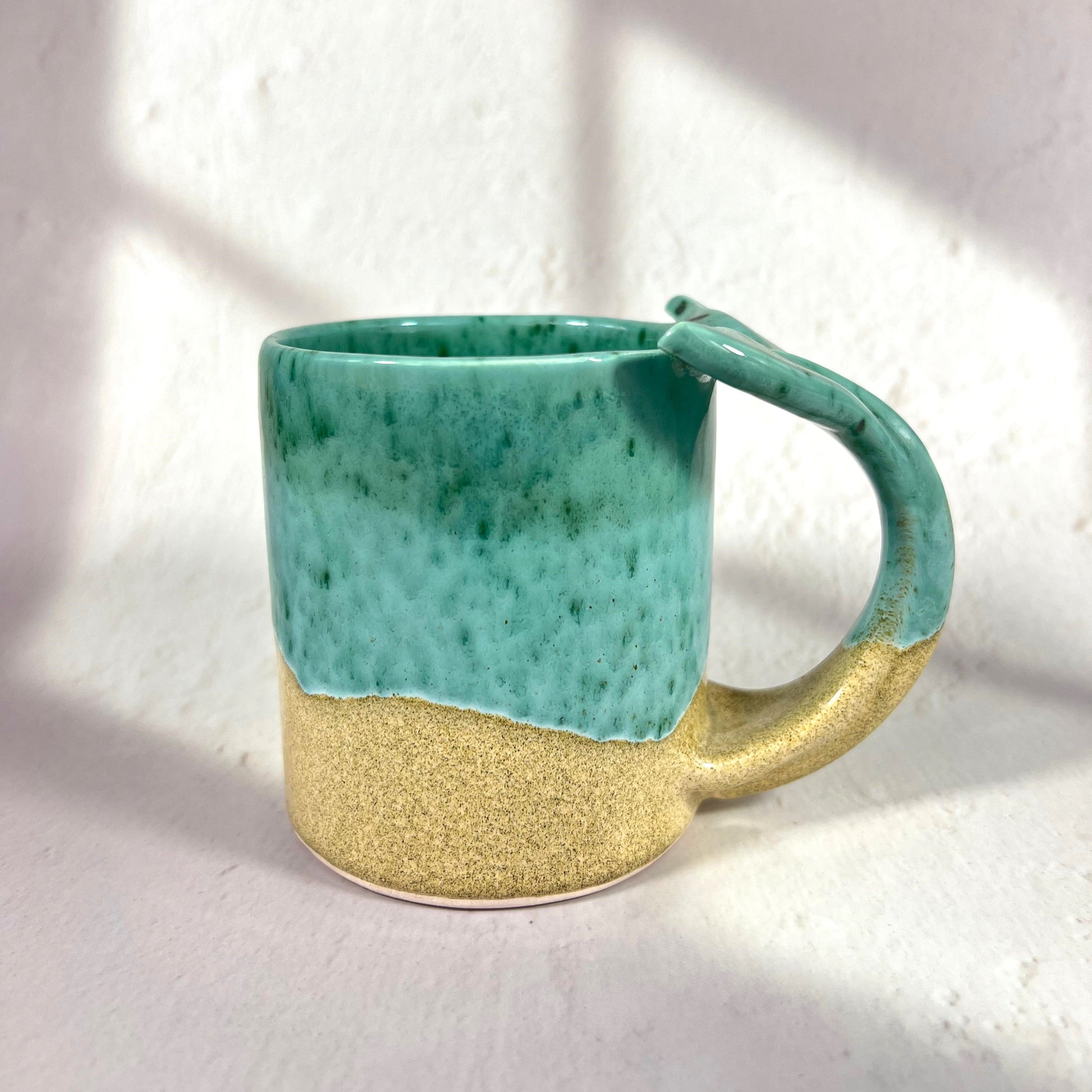 Bring the beauty of the ocean to your daily routine with our Ocean Wild Mug. Inspired by the calming hues of the sea and golden sandy shores, this handcrafted ceramic mug features a stunning two-tone glaze with a unique wave-shaped handle for an artistic touch.