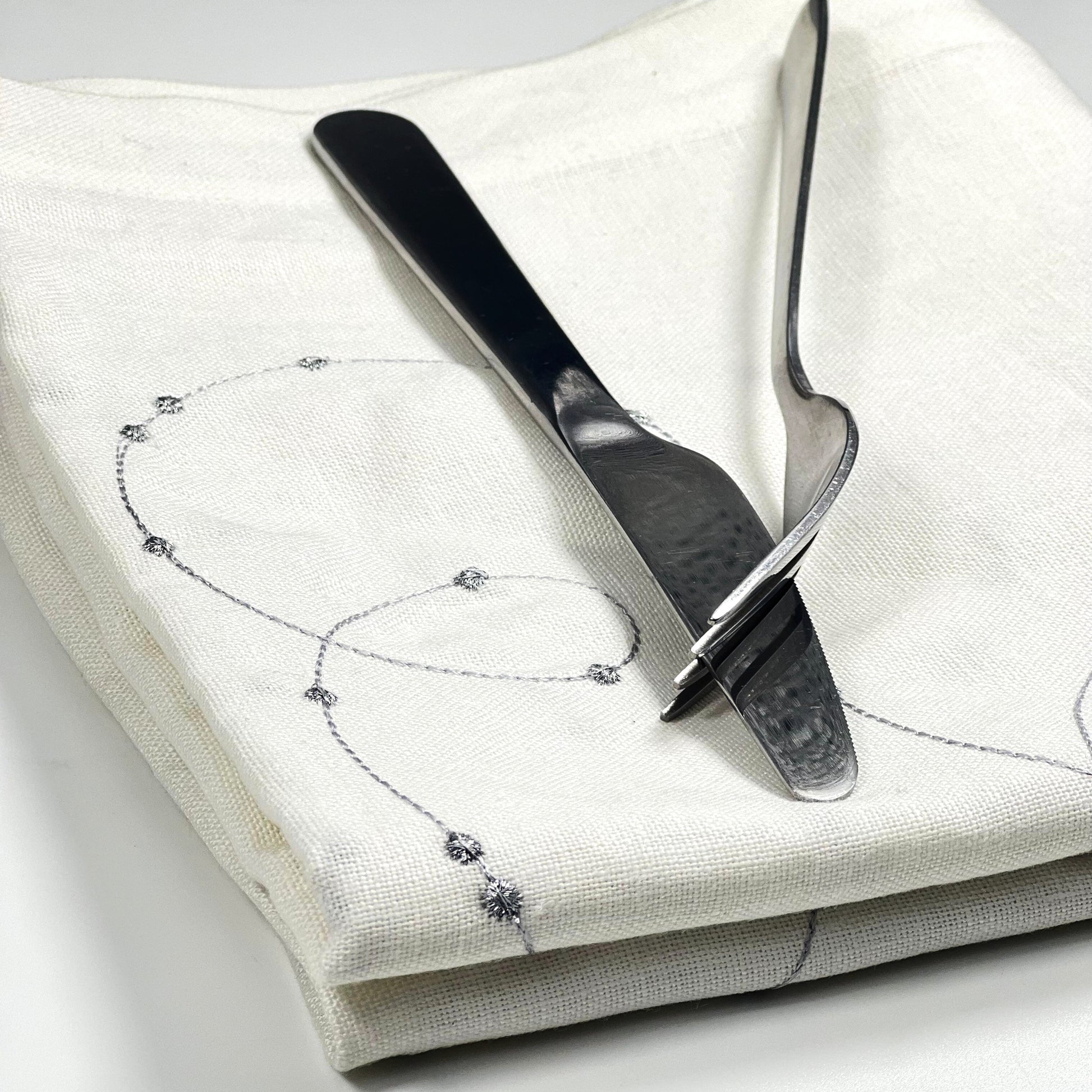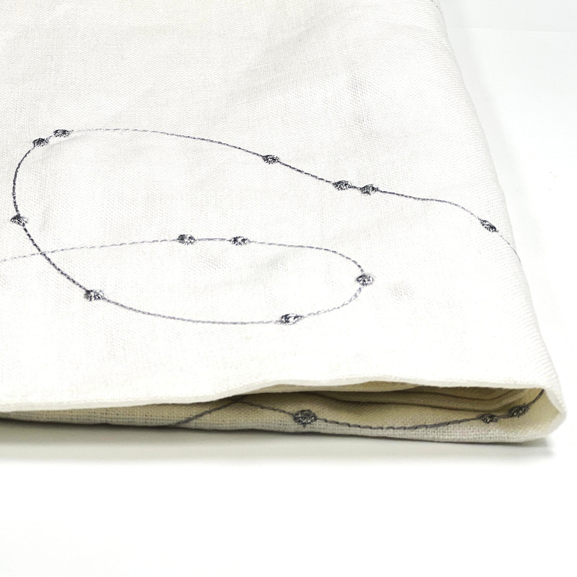 Elevate your table setting with the delicate beauty of the Rain Drop Silver Linen Runner. Featuring fine silver embroidery in a graceful raindrop pattern, this runner adds subtle shimmer and modern charm to your dining or console table.