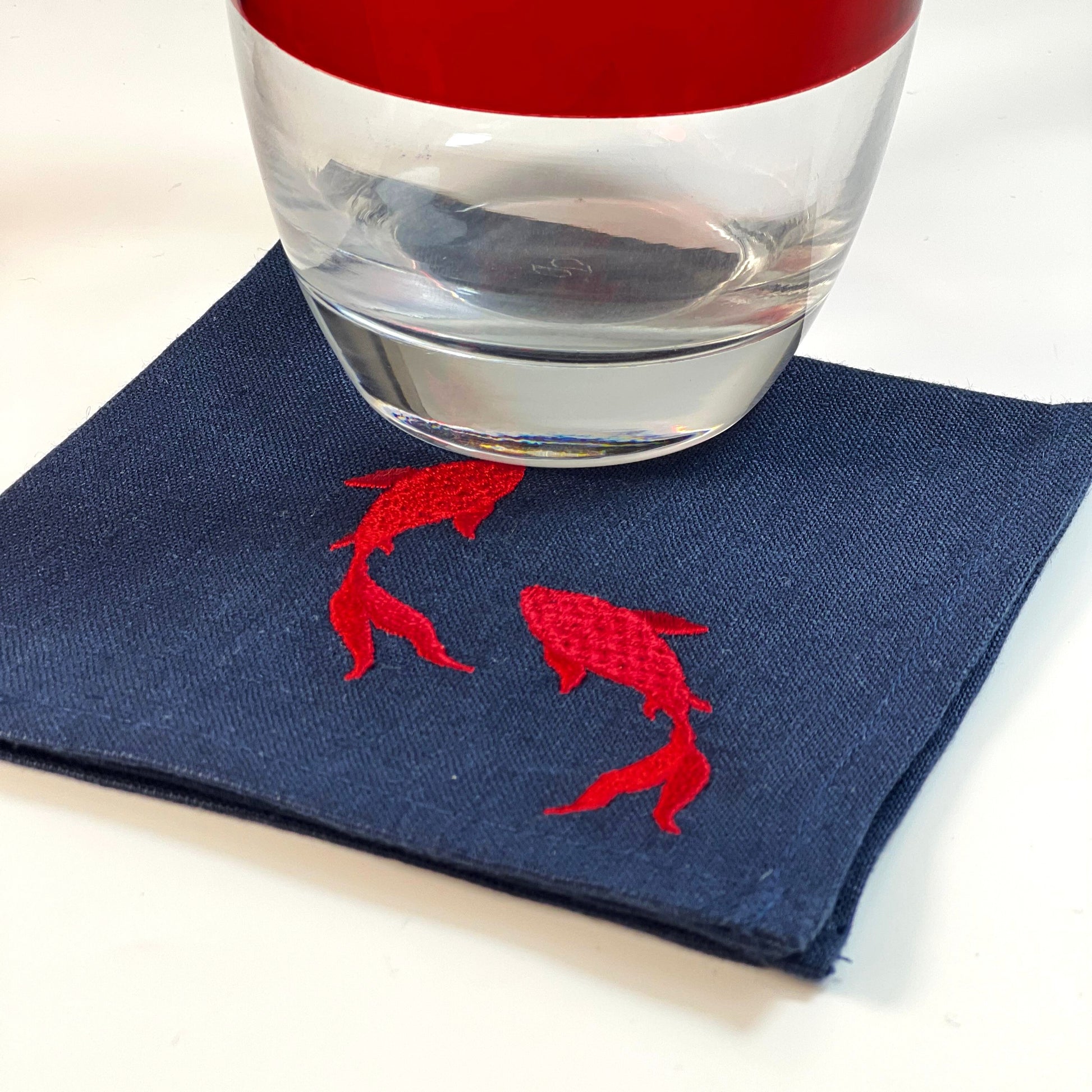 Bring a touch of nautical charm to your table with our Red Fishes-Navy Linen Cocktail Napkin. Crafted from premium linen, this napkin boasts a bold and vibrant design, perfect for adding personality to your gatherings.