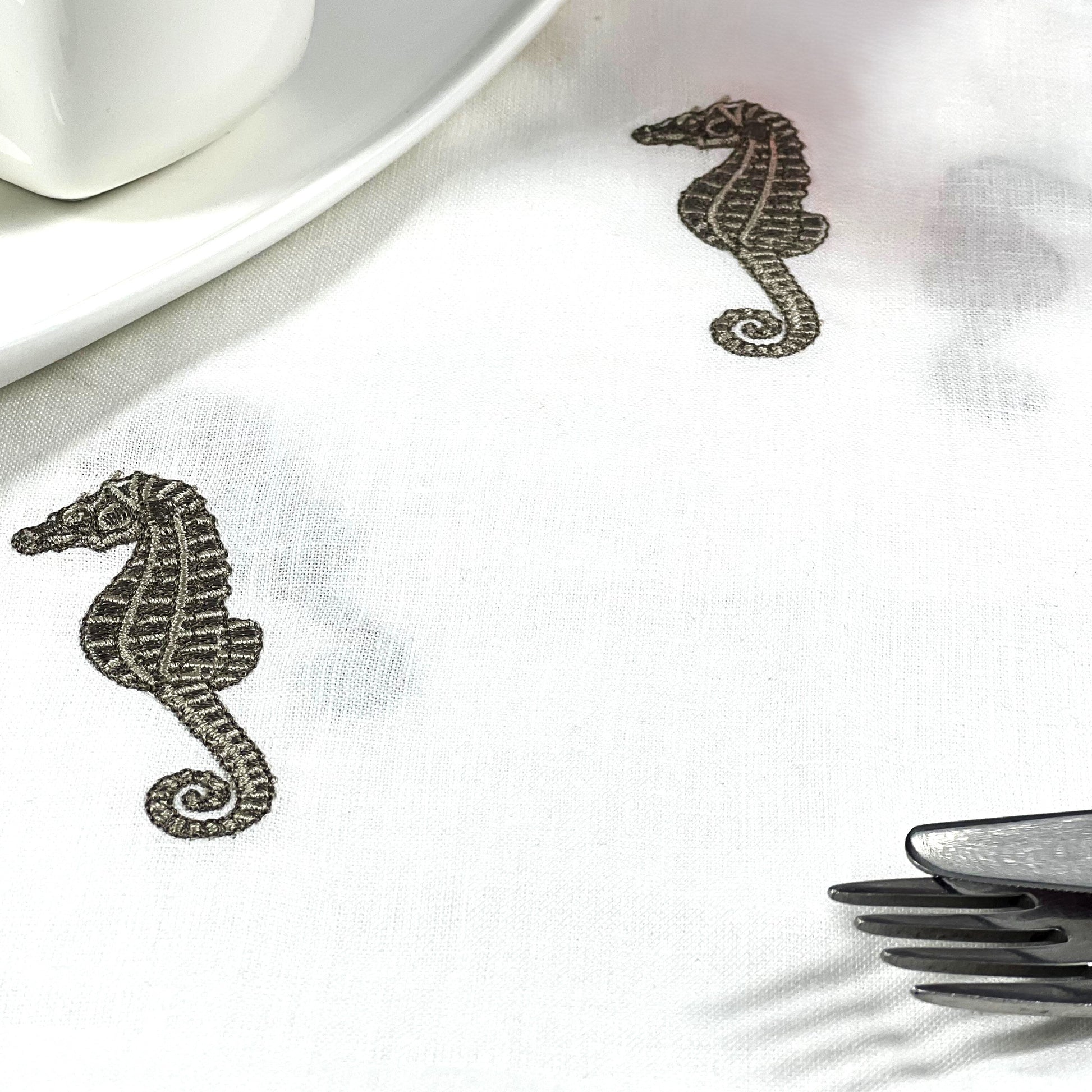 Elevate your table setting with the timeless elegance of our Sea Horse Hemstitch Linen Runner. Featuring a sophisticated beige-white color palette, this runner is crafted from premium-quality linen, offering a smooth and luxurious texture that enhances any dining or decor experience.