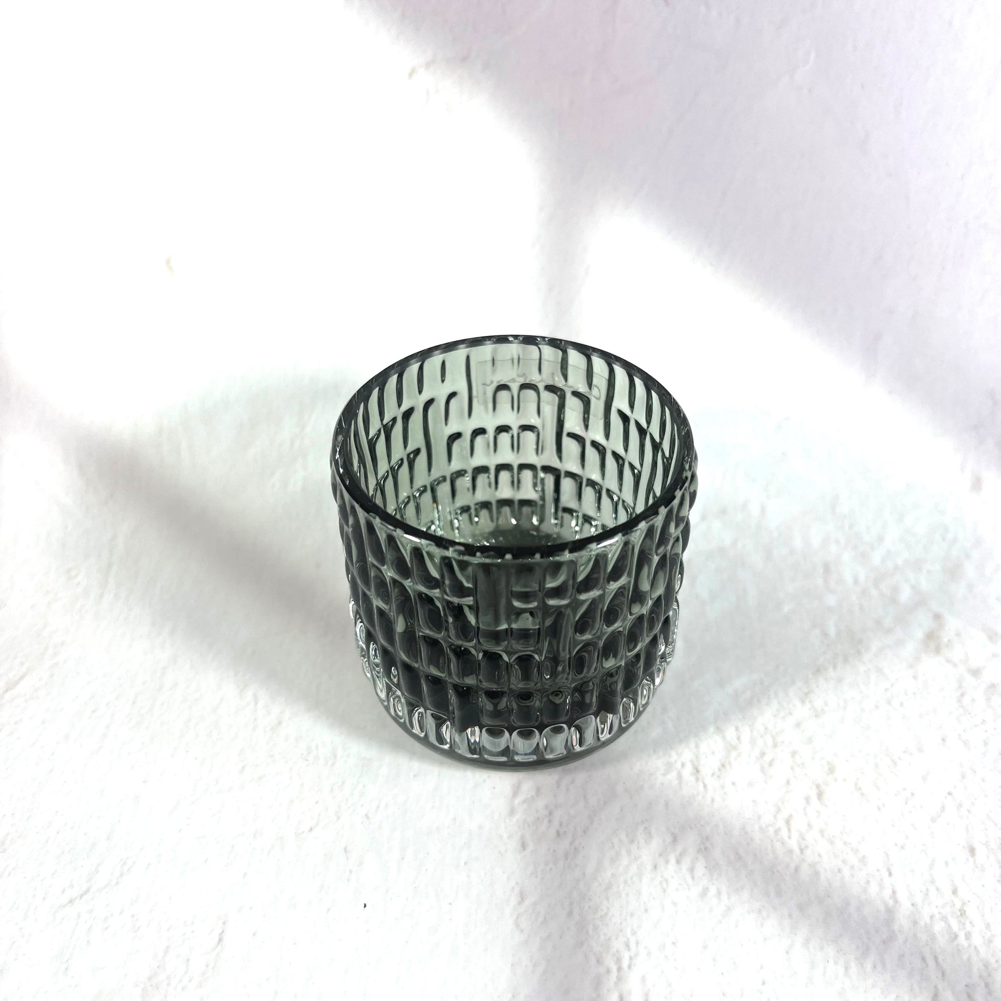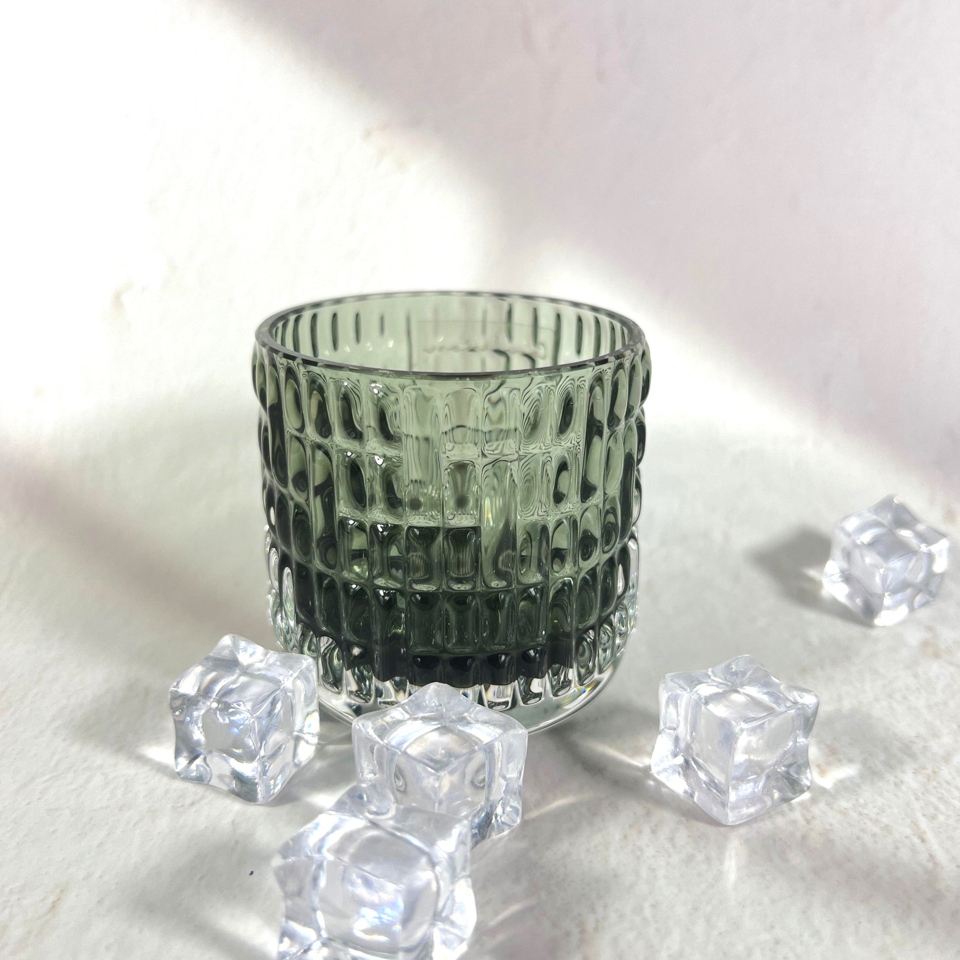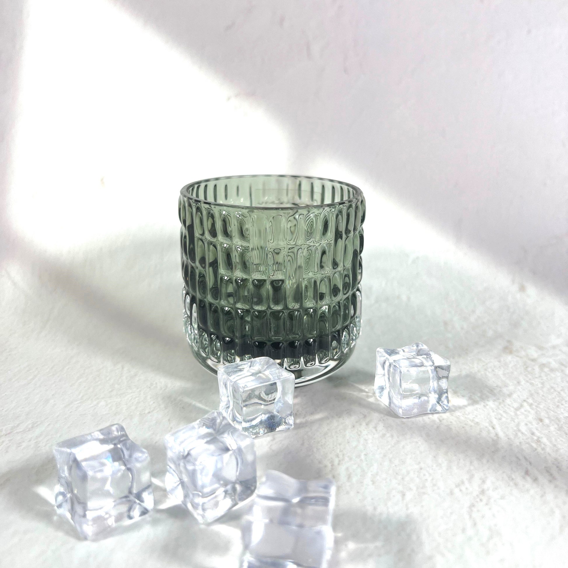 Add a touch of sophistication to your space with this stunning Smoke Glass. Featuring a unique grid-textured design, this glass is perfect for serving drinks, displaying candles, or as a decorative piece in your home or café.