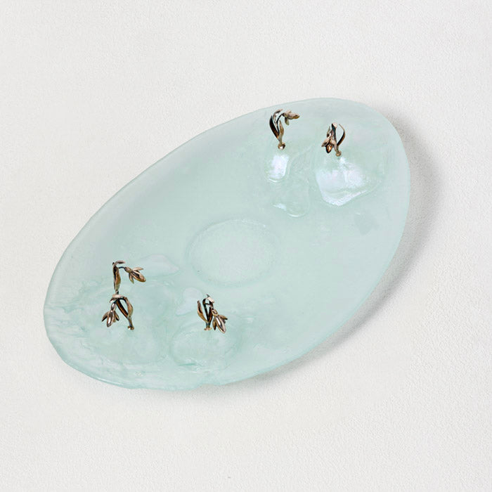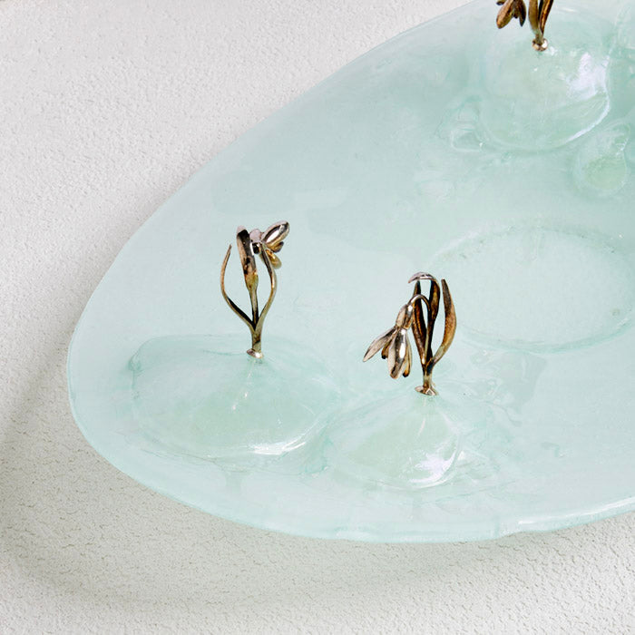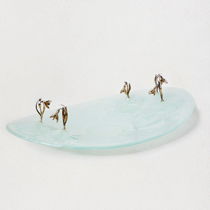 Celebrate the essence of renewal with SPRING BLAST, an exquisite handcrafted glass piece featuring delicate metallic sprouts emerging from its fluid, organic form. This ethereal work of art captures the beauty of nature’s awakening, evoking the fresh energy of springtime growth.