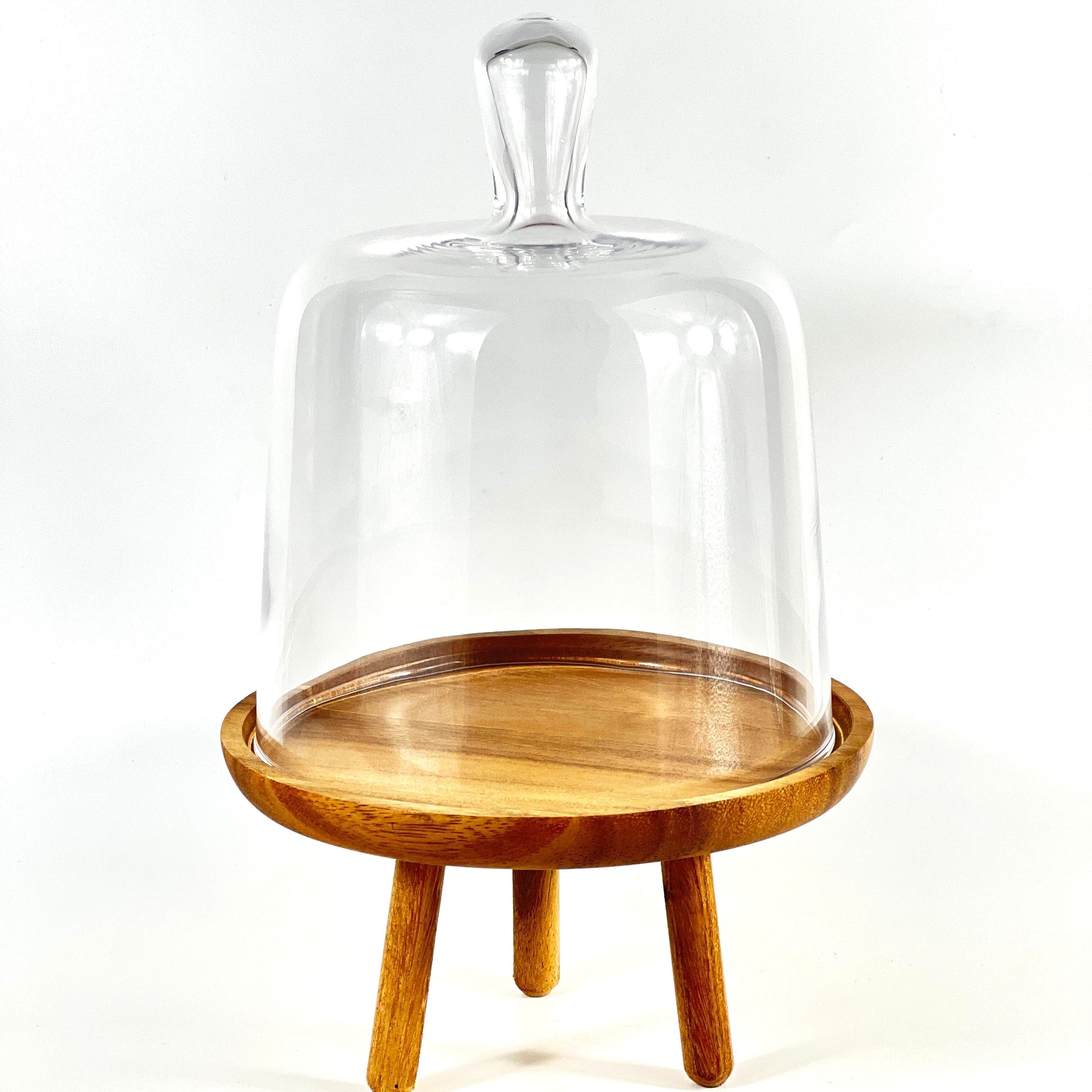 Showcase your baked creations in style with the Trio Fanus Wooden Cake Stand. Crafted with a natural wooden base and a clear dome cover, this elegant stand is perfect for serving cakes, pastries, cheeses, or fruits while keeping them fresh and beautifully displayed.