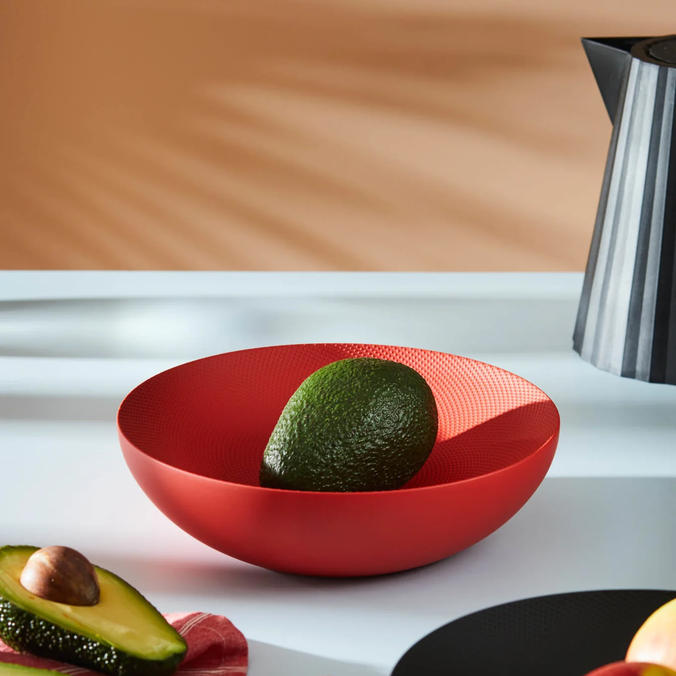 Double the light and elegant double-walled bowl. The granulation-enhanced surface of the bowl is further enhanced by the colour that creates a unique plastic effect.