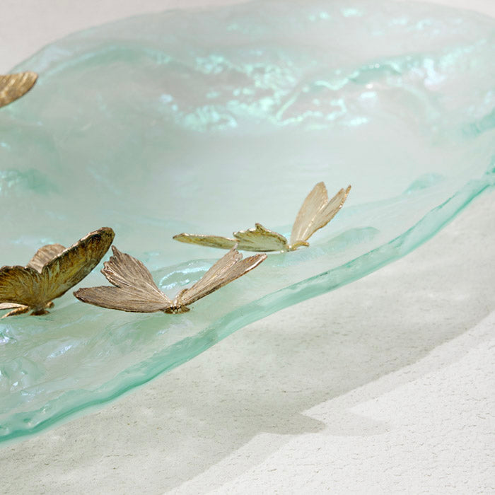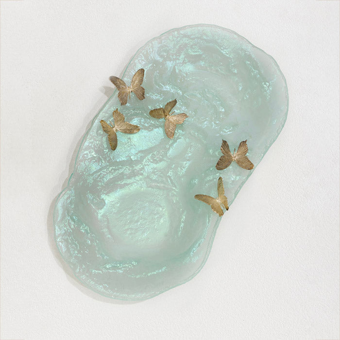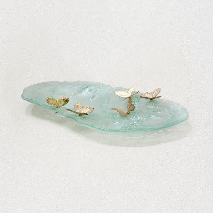 Experience the ethereal beauty of the White Storm, a handcrafted LISOWSKI that embodies movement, texture, and elegance. Its organic, freeform shape and frosted glass surface mimic the swirling energy of a storm, while delicate golden butterflies add a touch of nature’s grace.